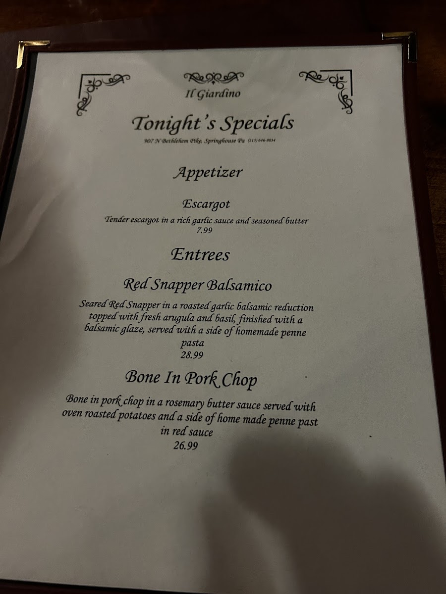 At Il Giardino Italian Cuisine, the menu is a celebration of rich, authentic Italian flavors crafted with fresh, local ingredients. The restaurant’s menu is designed to offer something for everyone, whether you’re craving a comforting bowl of pasta, a mouth-watering pizza, or an exquisite seafood dish. Each item reflects the essence of Italy, with traditional recipes and modern twists that bring together the best of both worlds. The warm atmosphere of the restaurant makes it the perfect place to enjoy a delicious meal with friends and family, whether you're looking to indulge in a leisurely dinner or grab a quick bite. As you peruse the menu, you’ll find dishes that feature seasonal ingredients, all prepared with care and attention to detail. So whether you're in the mood for a hearty lasagna, a flavorful risotto, or a light antipasto, the bold flavors of the Il Giardino Italian Cuisine Menu are sure to delight your taste buds.